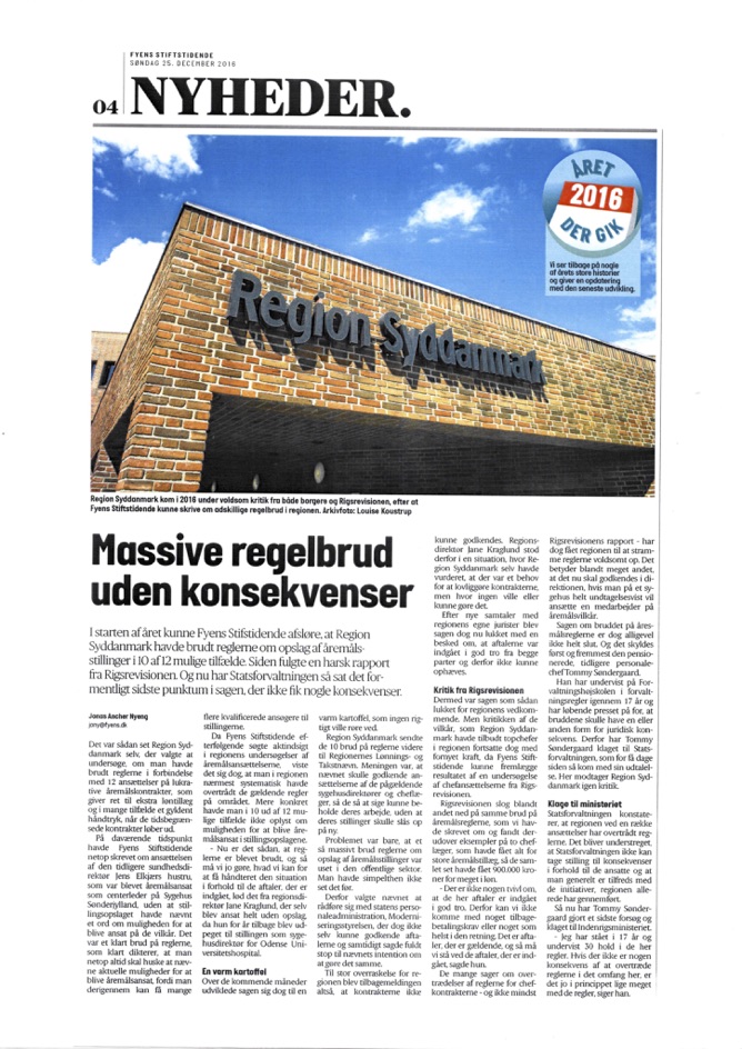 Der har tidligere være massive regelbrud i Region Syddanmark, jf. bl.a. artiklen her fra JydskeVestkysten, den 25. december 2016